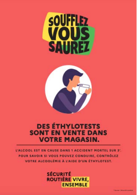 À partir du 1er juillet 2021, les établissements de boissons alcoolisées à emporter doivent obligatoirement proposer à la vente, de façon permanente, des éthylotests à proximité du rayon présentant le plus grand volume de boissons alcooliques (ou près du lieu d'encaissement pour les débits dont l'activité principale est la vente d'alcool). Cette obligation concerne également les sites de vente en ligne de boissons alcoolisées.